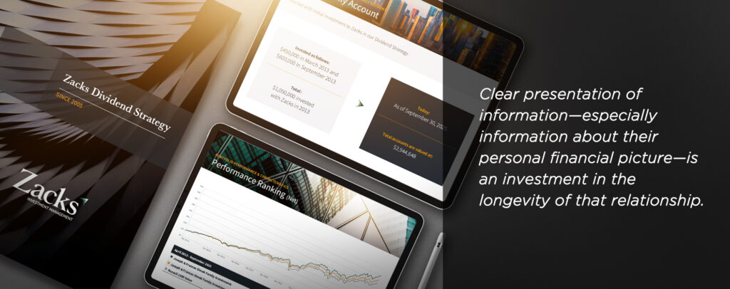 It’s about helping clients understand what you’re doing, while showing them you understand what they need. Clear presentation of information—especially information about their personal financial picture—is an investment in the longevity of that relationship.